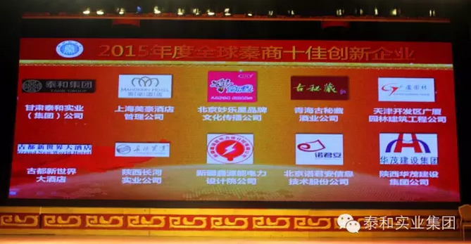 甘肅泰和實(shí)業(yè)(集團(tuán))有限公司摘得"2015年度全球秦商十佳創(chuàng)新企業(yè)"