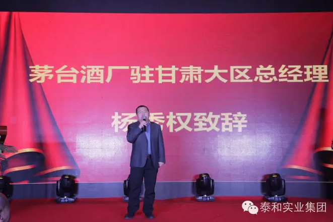 年會上,與集團(tuán)公司長久保持良好合作關(guān)系的貴州茅臺酒廠駐甘肅大區(qū)總經(jīng)理?xiàng)钚銠?quán)到會祝賀并致賀辭,表達(dá)了對泰和集團(tuán)的良好祝愿。