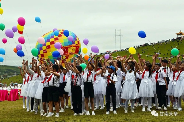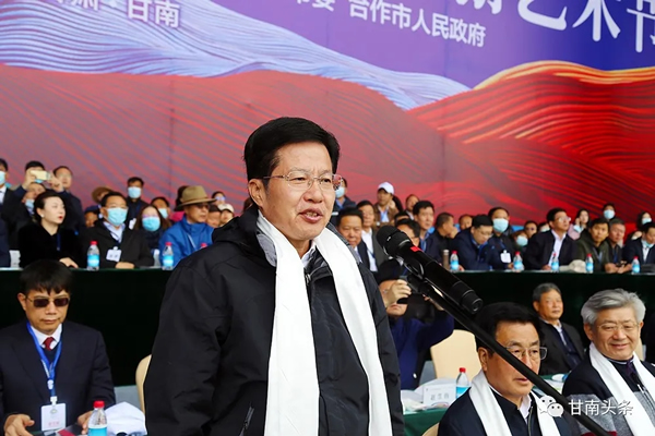 俞成輝在致辭中說,有一種天色叫“甘南藍(lán)”,無須望眼欲穿,夢想的翅膀就會自由飛旋;有一種底色叫“甘南綠”,無須濃墨重彩,信仰的曲線就會自然天成;有一種水色叫“甘南美”,無須詩情畫意,心靈的港灣就會碧波蕩漾;有一種月色叫“甘南情”,無須驀然回首,記憶的廊橋就會燈火闌珊;有一種音色叫“甘南韻”,無須曲高和寡,生命的天籟就會穿越云霄;有一種成色叫“甘南紅”,無須慷慨激昂,奮進(jìn)的旗幟就會迎風(fēng)飄揚(yáng)……
